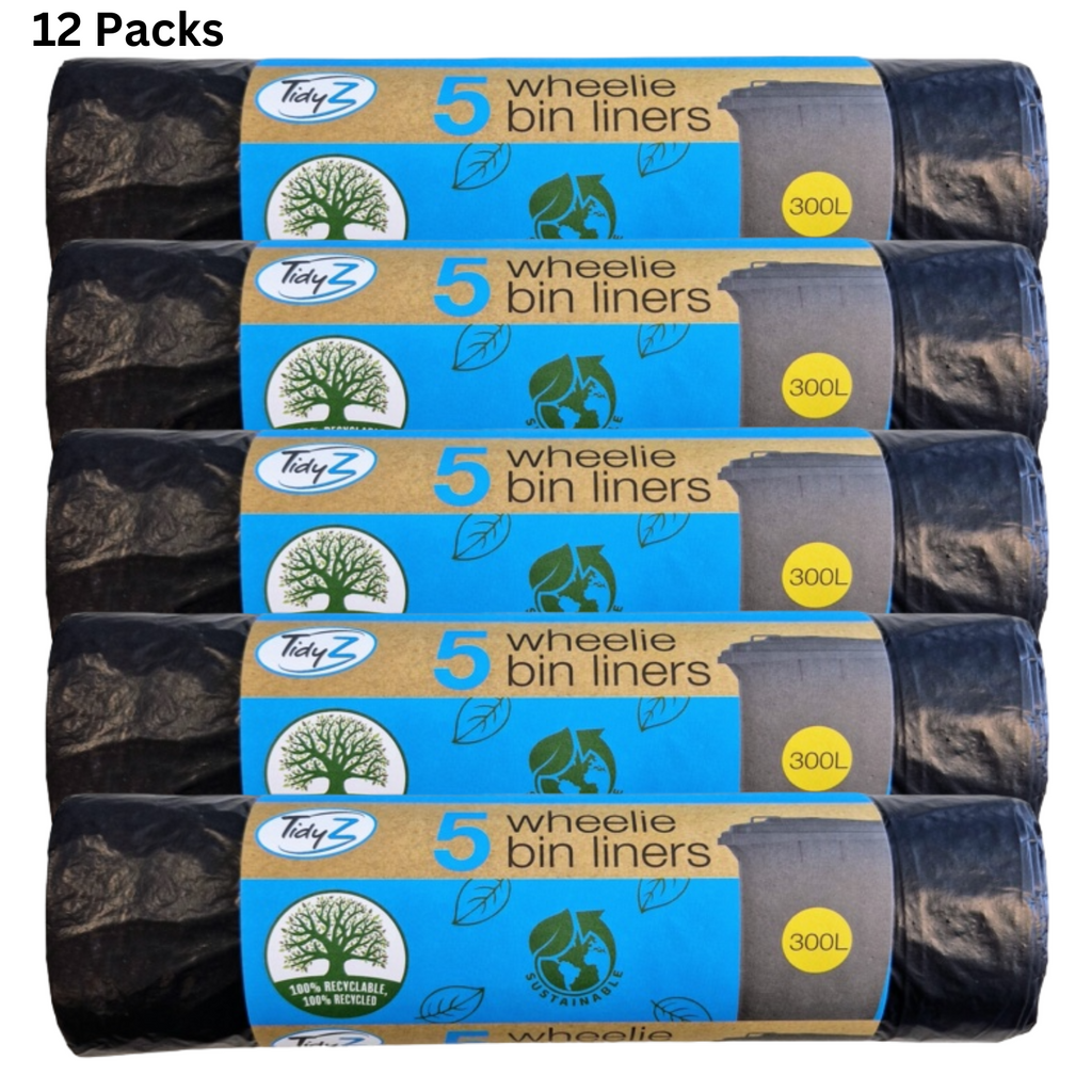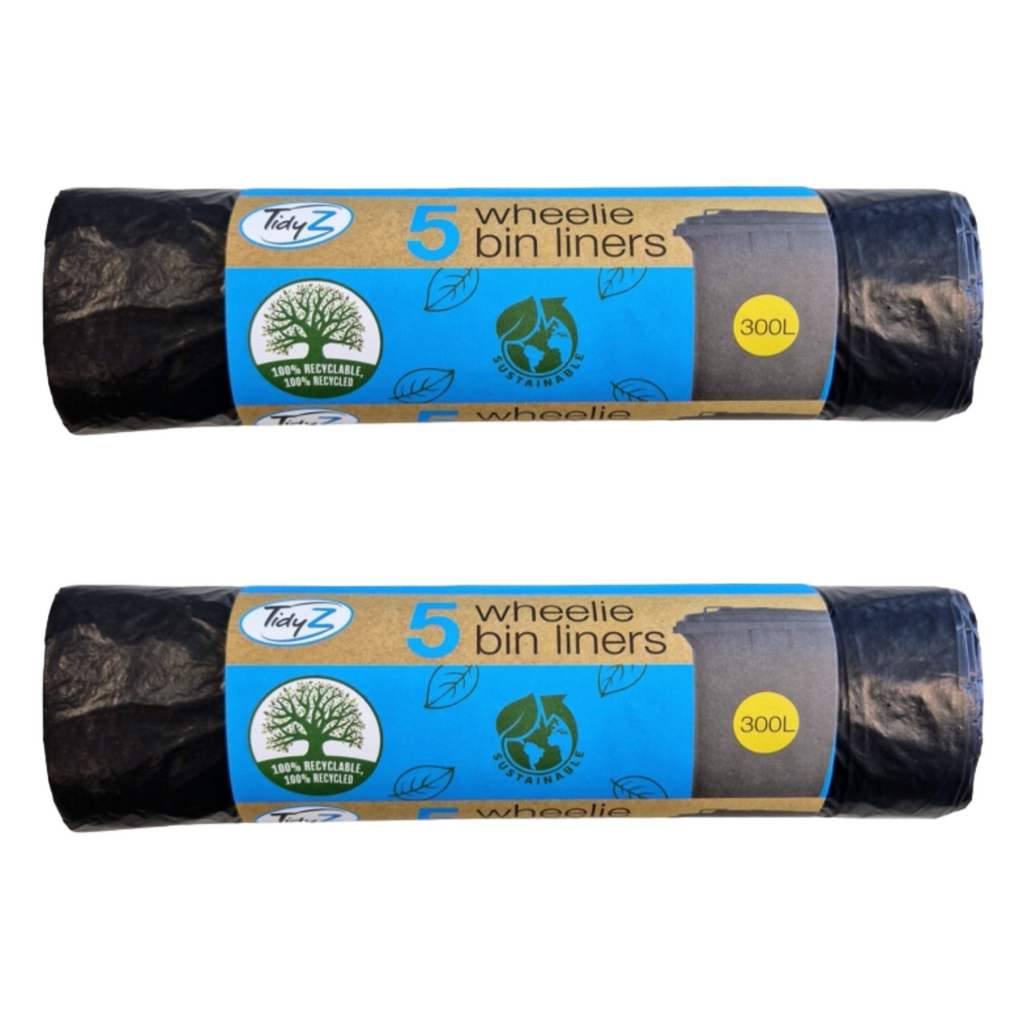 Tidyz Wheely Bin Liners – Heavy Duty 300L Recycling Bags (Roll of 5) | Tear-Resistant, Leak-Proof Premium Bin Bags for Kitchen, Garden, Office & Catering | Durable Waste Sacks for Wheelie Bins